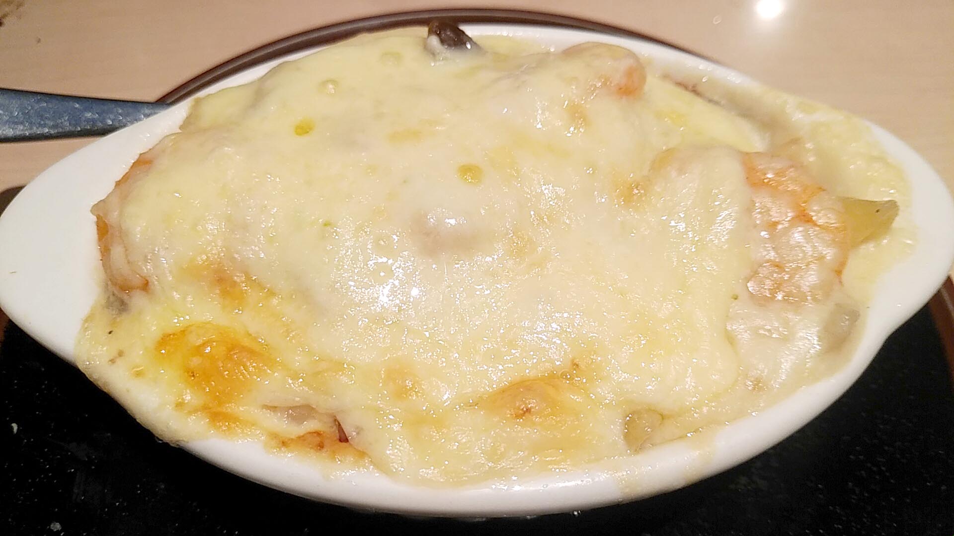 トロトロのなす、甘いミートソース、たっぷりのチーズがグツグツ。なすチーズ焼きもぜひ食べて頂きたい。2022年11月4日放送の『日本一ふつうで美味しい植野食堂 by dancyu』(BSフジ)でも紹介されました。
