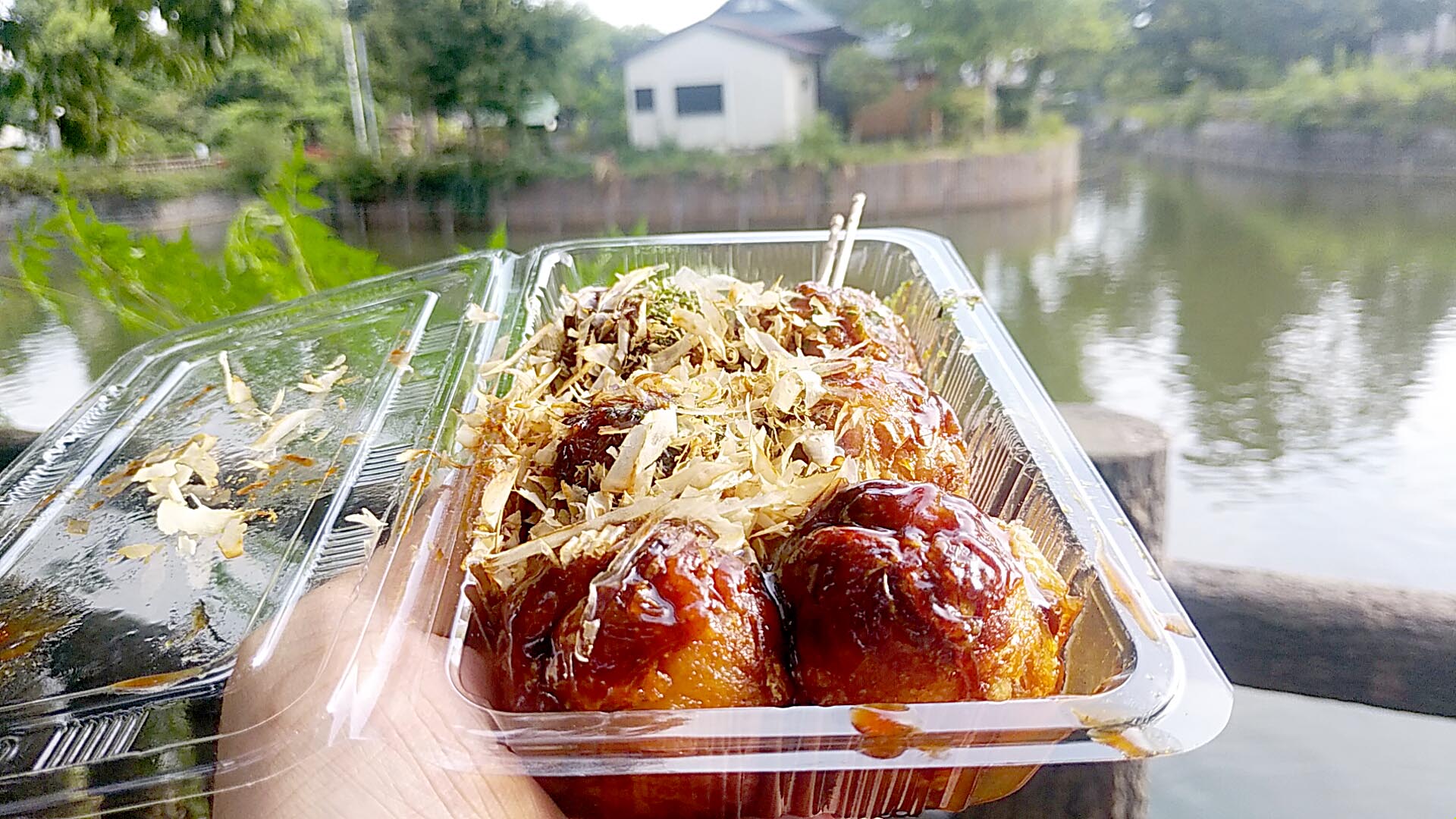 花たこのたこ焼きはできるだけすぐに食べる。これが一番。時間が経つと中はベチョッとして、表面の焦げ臭さも際立ちます。冷めた花たこは正直……。ですから、長時間持ち歩くような手土産には向かないと私は思ってます。通行の邪魔にならないところで、なんとか食べて下さい。あるいはすぐに家に帰ってすぐに食べる!