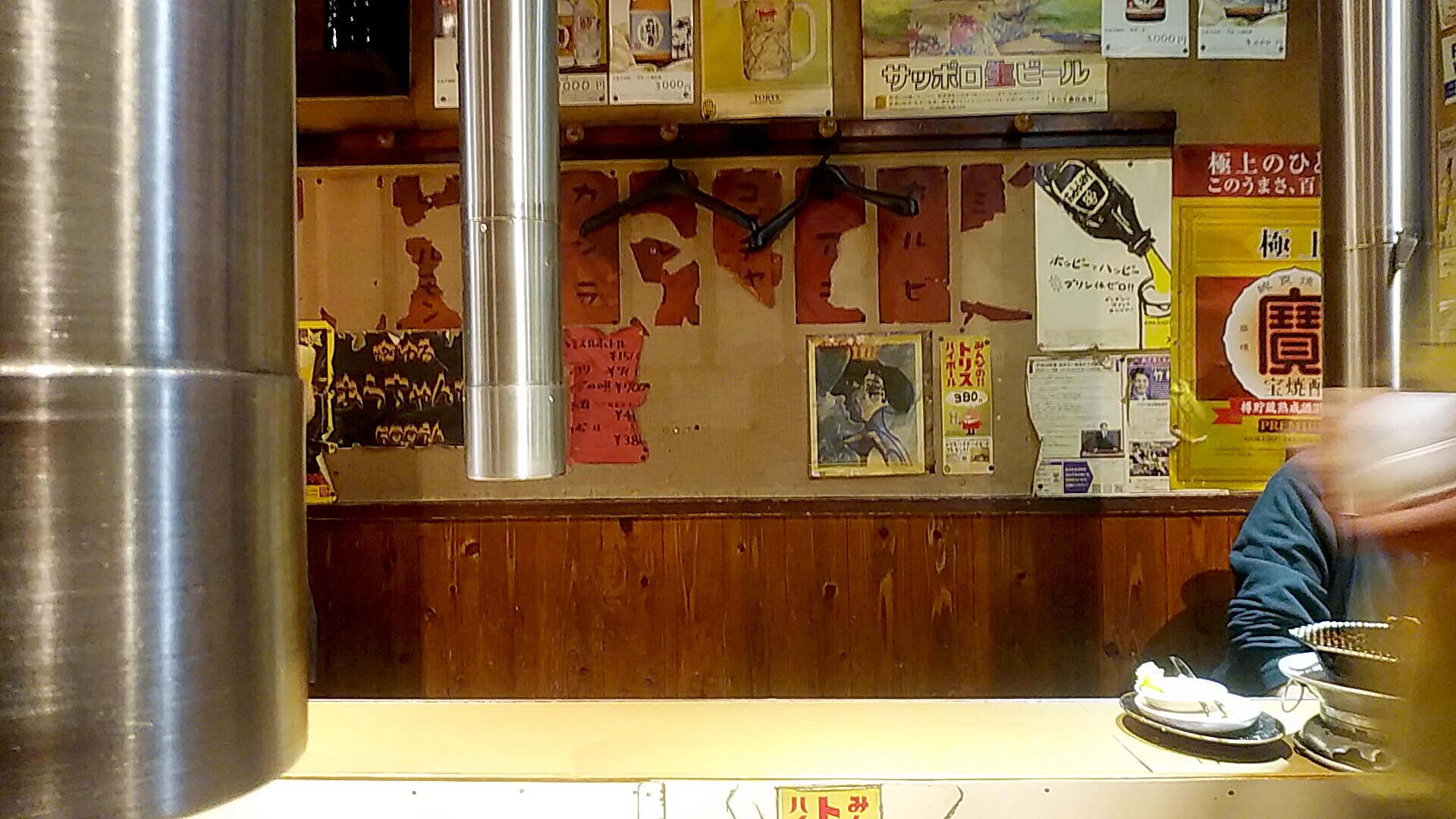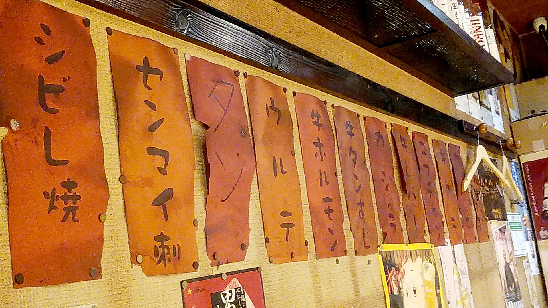 ホルモン中心のメニュー。店の雰囲気も価格も、どこかで時が止まっているかのようです。