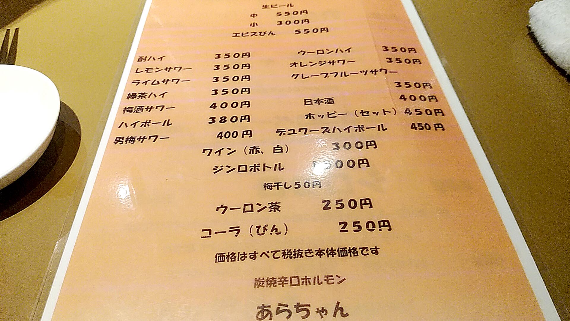 学芸大学駅から徒歩3分。東口を出て、線路に沿うように右手へ。しばらく歩くと、炭火辛口ホルモン あらちゃんという焼肉屋があります。1993年4月20日創業の老舗です。