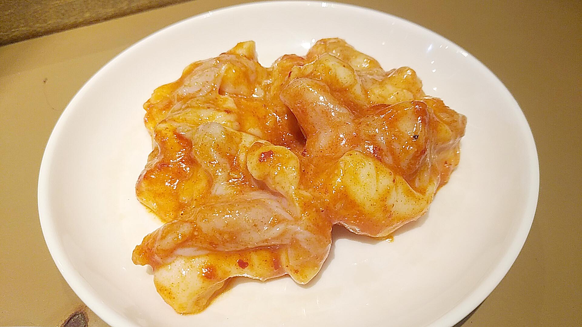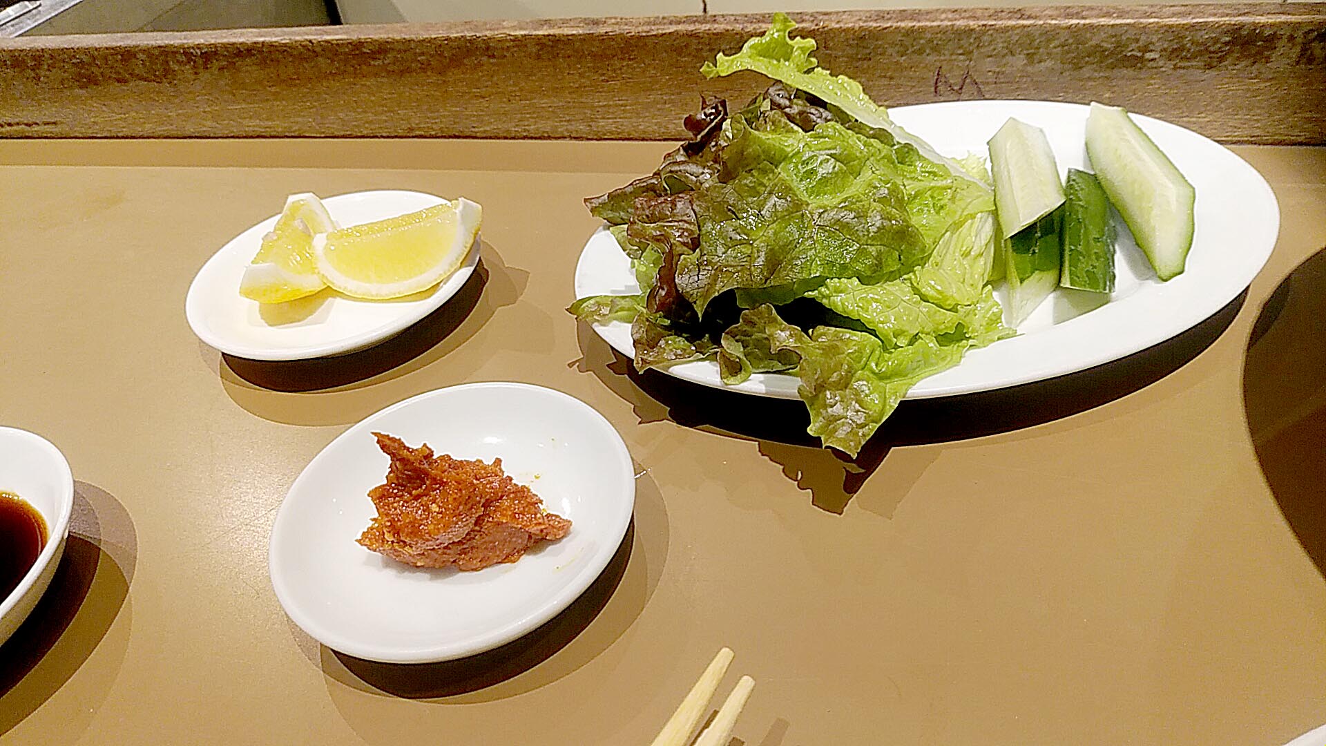 付き出しにもやしナムルが出てきて、肉を頼むと野菜が出てきます。会計から逆算するに、もしかしたら200円ほどの”お通し代”のようなものがかかっているかもしれません。