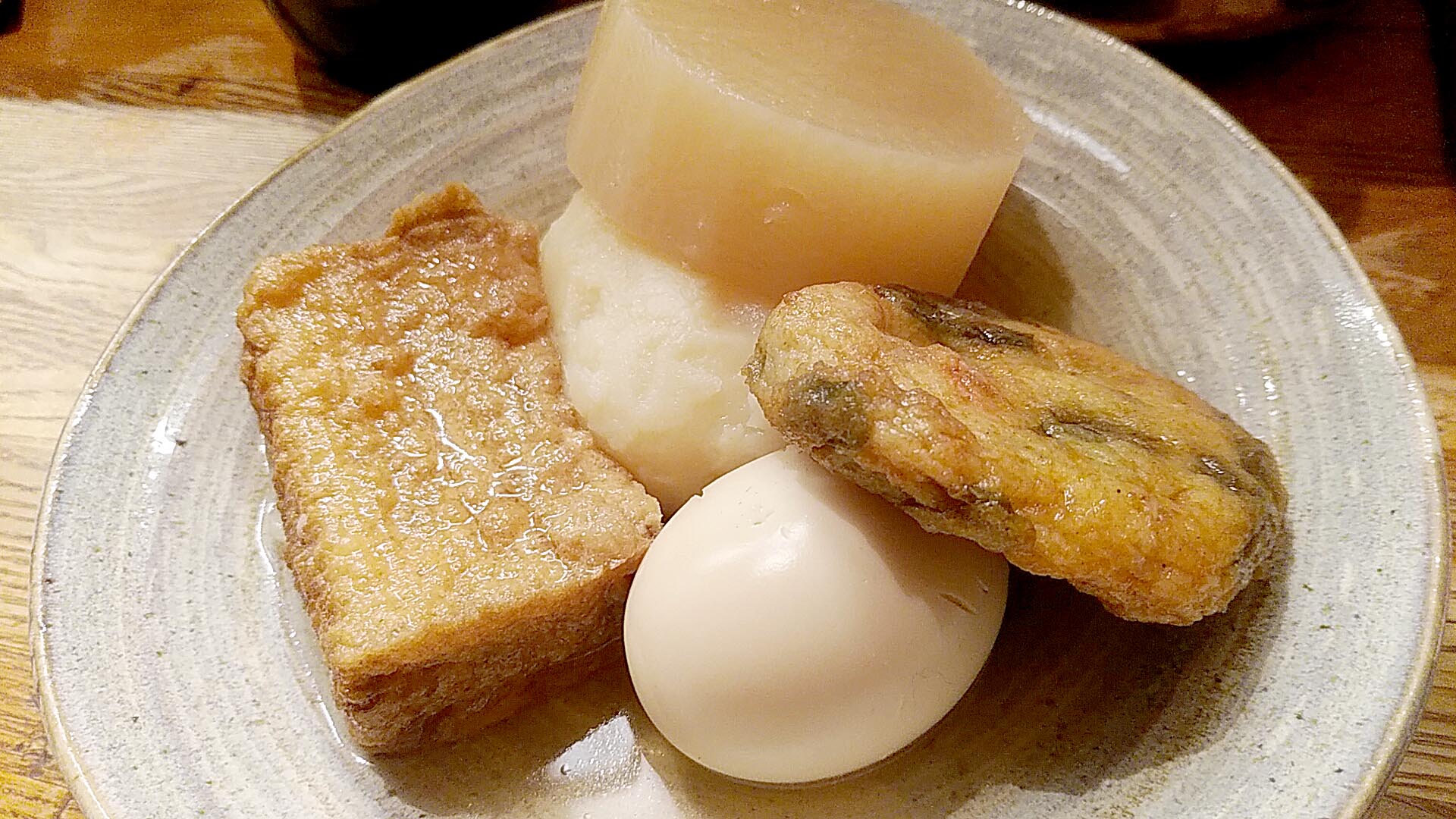 そしておでんを頼みます。卵と大根とガンモとこんにゃく。