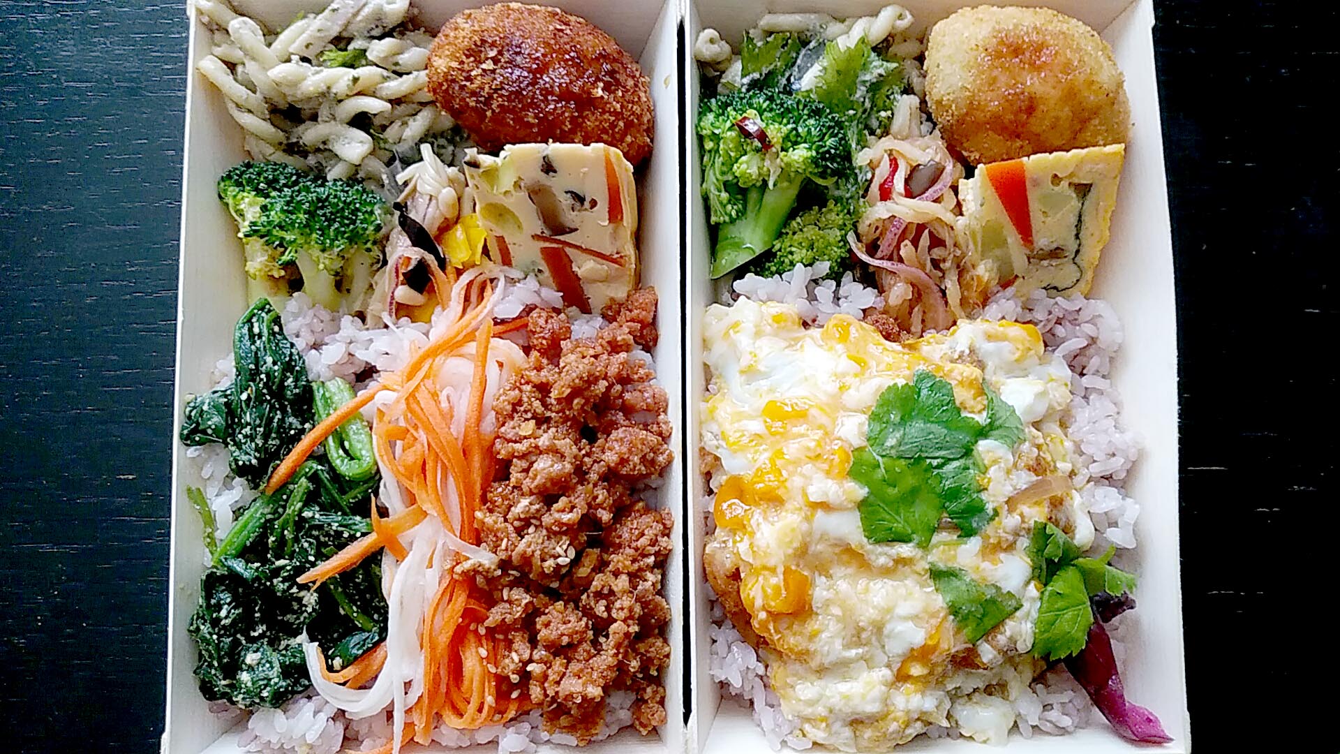もちろんきれいなお弁当なんですが、「美しい!」という感じではなく、いい意味で雑然としています。これがアジアっぽさを醸し出していて、なんだかワクワクさせてくれます。