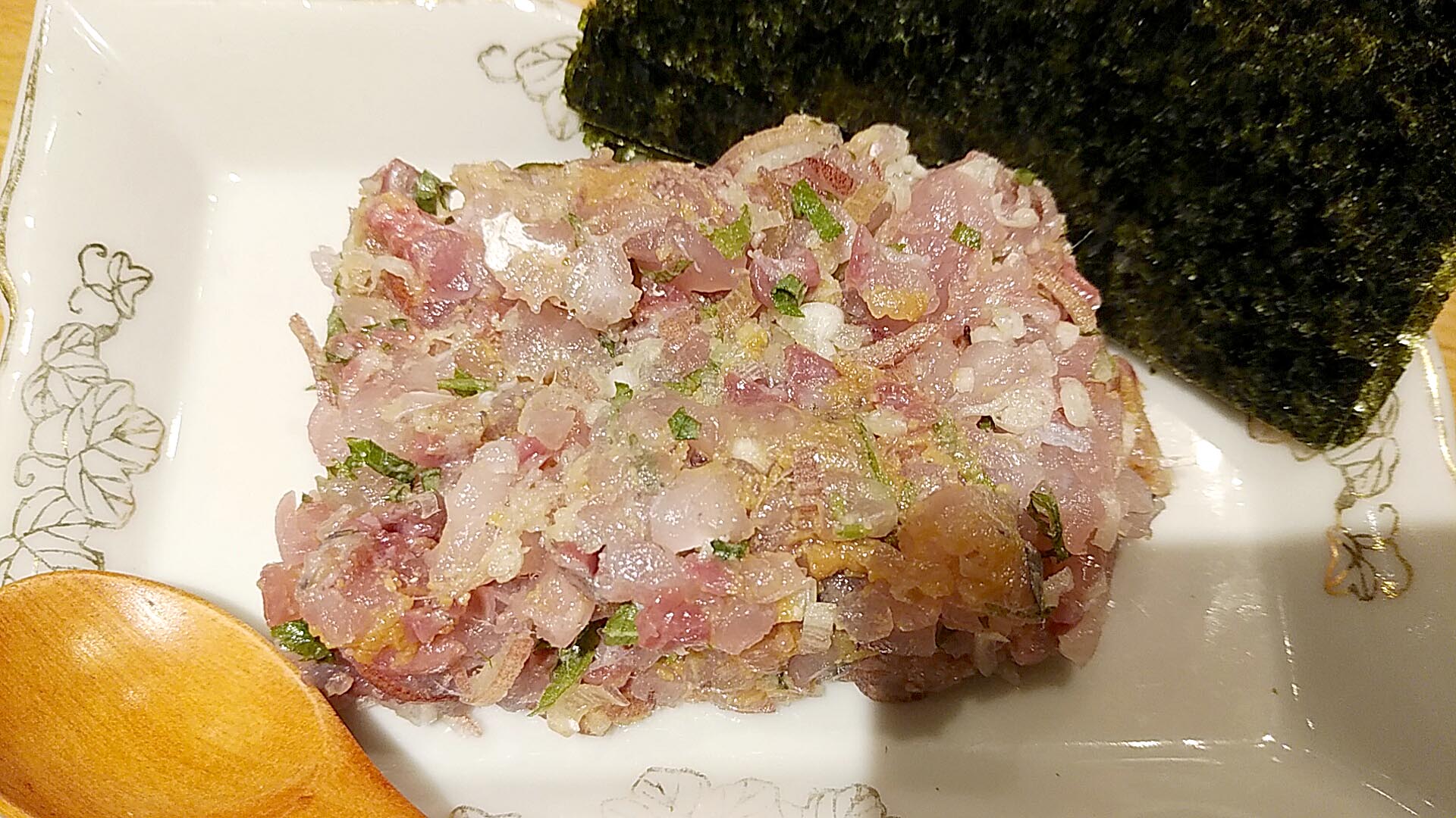 目鯵なめろうがあったらラッキーです。最高。作ってる様子を見るのも楽しい。
