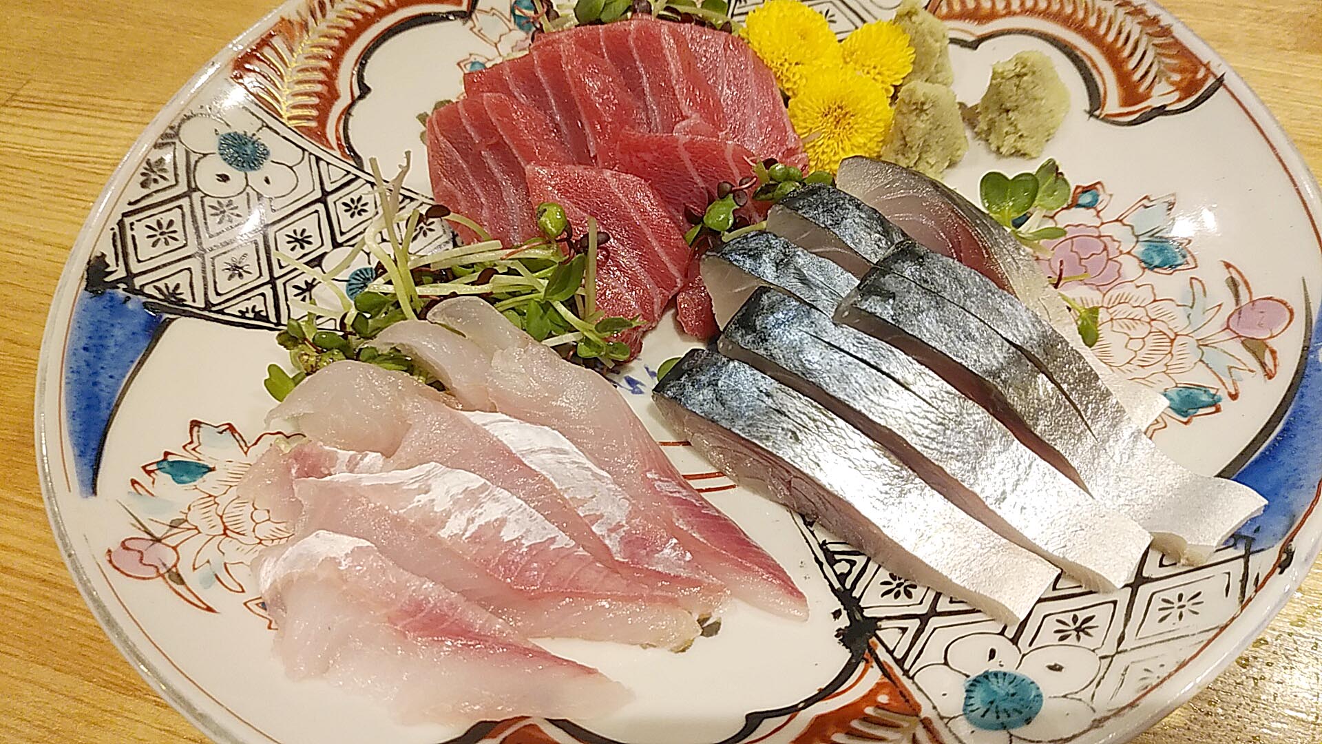 まぐろはレギュラーでいつもありますが、その時々によって違う魚もあります。カンパチ刺しもうまい。