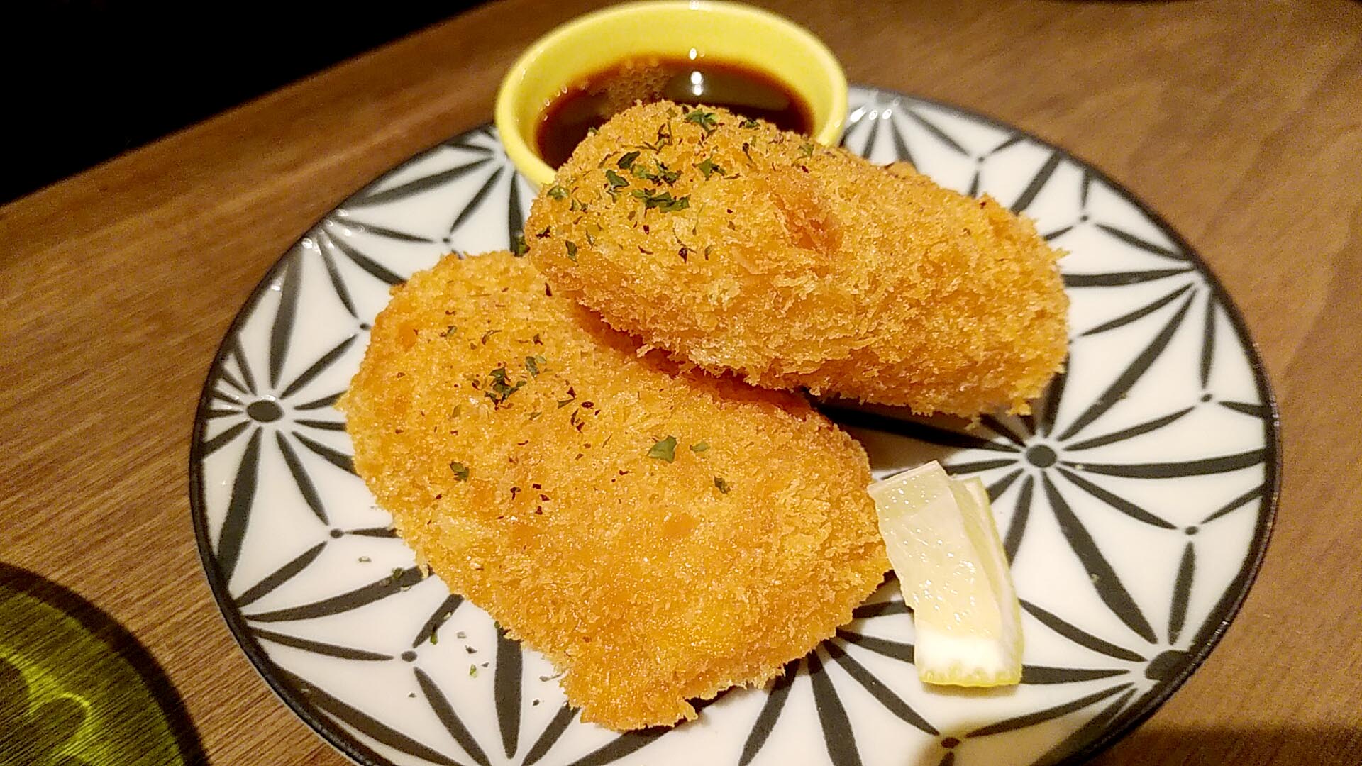 豚串カツ(250円)は豚バラとネギが揚げられています。豚バラがジューシーでおいしい。