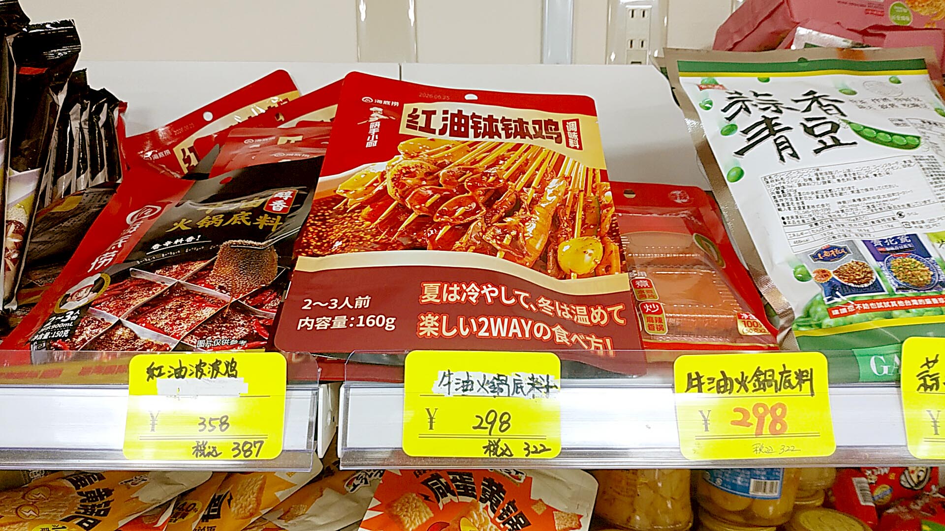 カルディで売っているような麻辣火鍋の素もおいしいです。けど、日本人の口に合わせた"ちゃんと"おいしい調味料とは違い、こちらは完全現地仕様のいけないおいしさ。健康のことを考えると、多くても月イチ程度に留めておくべきだろうなと思わせるおいしさ。