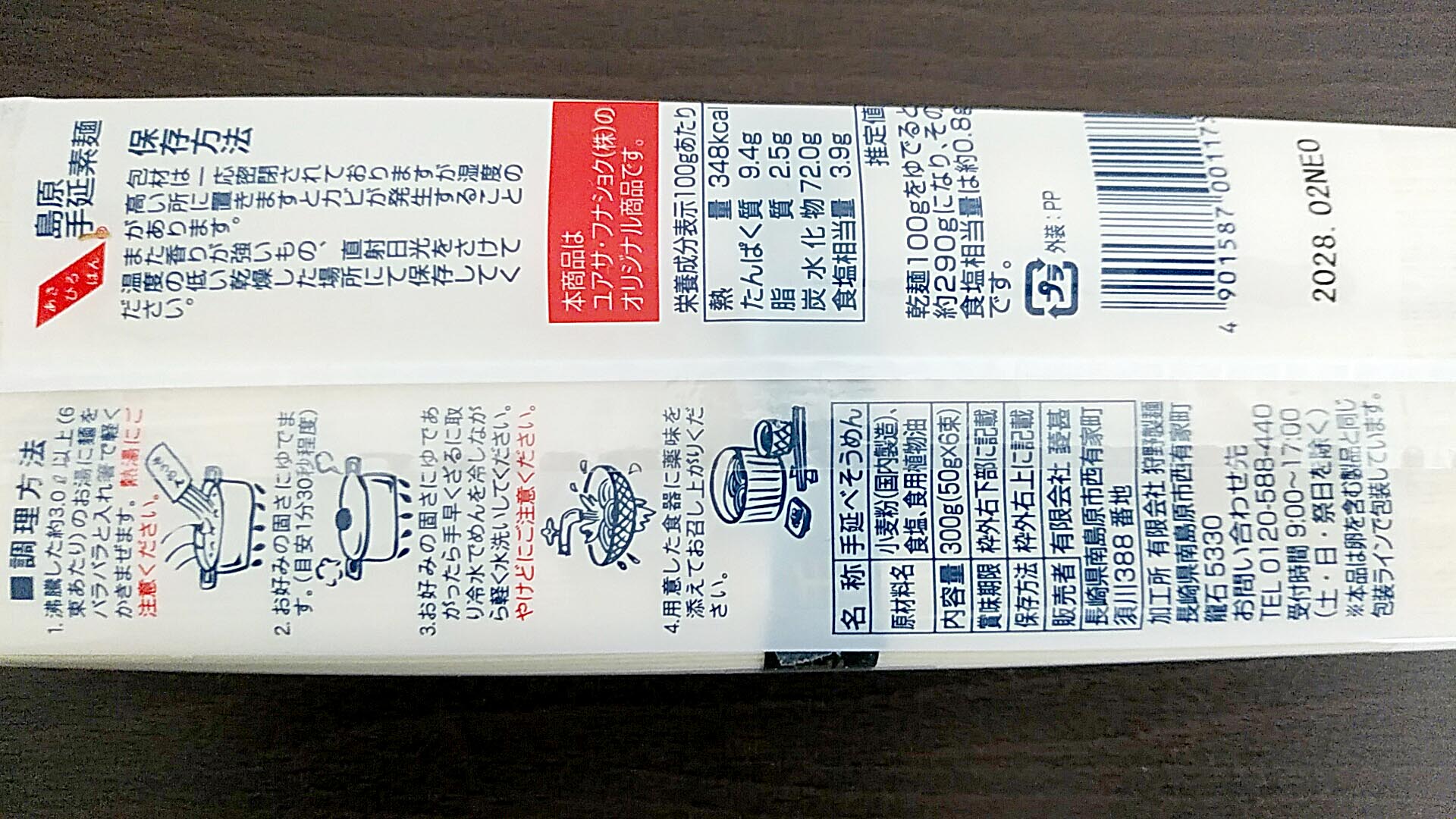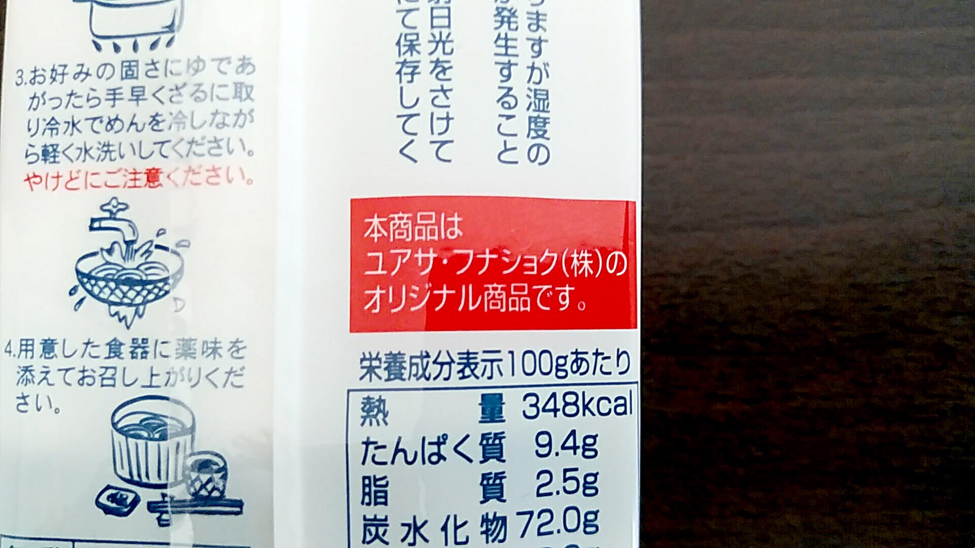 なお、ユアサ・フナショク株式会社は食品の卸などを手掛ける会社で、当手延素麺においては商品企画や流通(卸売り)などを担っているものと思われます。