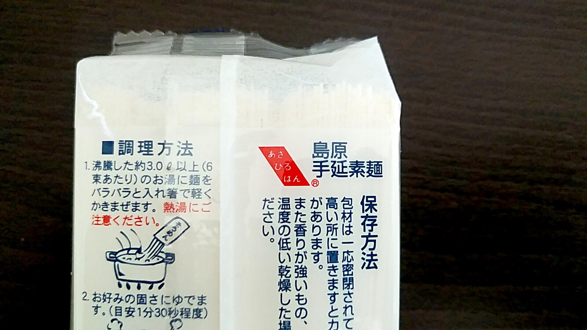 ところが、この手延素麺は表にそのような表記は一切なし。ただ、決して産地を隠そうとしているわけでもありません。裏面には島原手延素麺と書いています。不思議だ。