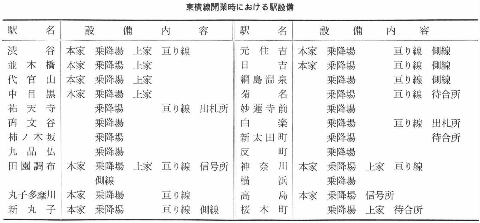 東急東横線開業当時の年表