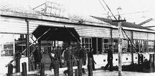 1932年(昭和7年)、開業して5年後の碑文谷駅です。ウィキペディアの「学芸大学駅」にも載っているくらい有名な写真。ホームの北端にくっつけるような形で駅舎が建ちました。