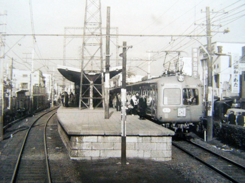 同年、1969年に下り線が高架化されるので、もしこれが桜木町行きだとしたら、高架化される直前。もし渋谷行きだとしたら、下り線はもう上の線路を通っているかもしれません。
