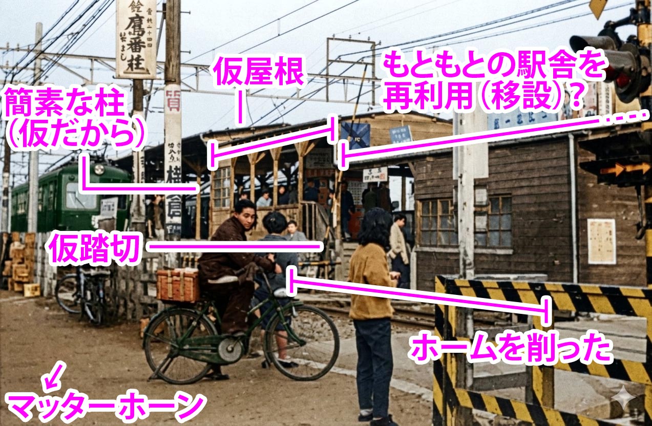 もう少し詳しく分けるのであれば、単独駅舎の前にホームだけの時代がありました。改札が地下化するのに際しては仮駅舎や仮踏切などが設置されていました。地下改札時代から高架化する際も、上下線でホームが上下に分かれるなど、過渡期的な特殊な駅になっていました。