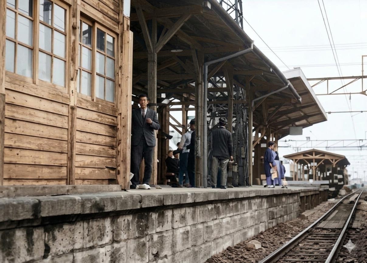 なお、先ほどのホームだけのAI生成画像はこのカラー化した写真を基にしています。