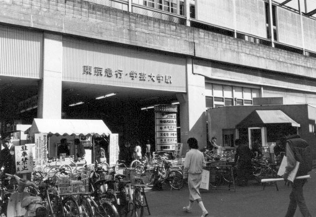 撮影年不明ですが、1970年代~1980年代でしょう。モノクロだから1970年代かな。私が知る限り、高架後の学芸大学駅のもっとも古い写真です。