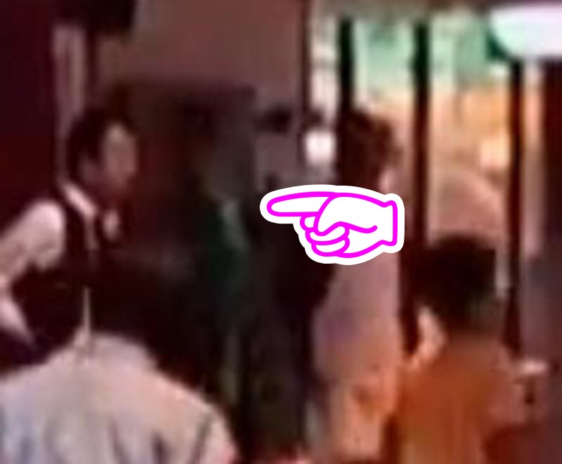 そして、ぜひ動画で見ていただきたいのですが、緑の上着を着たこの男性に注目です。右手からサーっと左手、今はシャッターが閉まっているあの階段方面へと早足で歩いていきます。