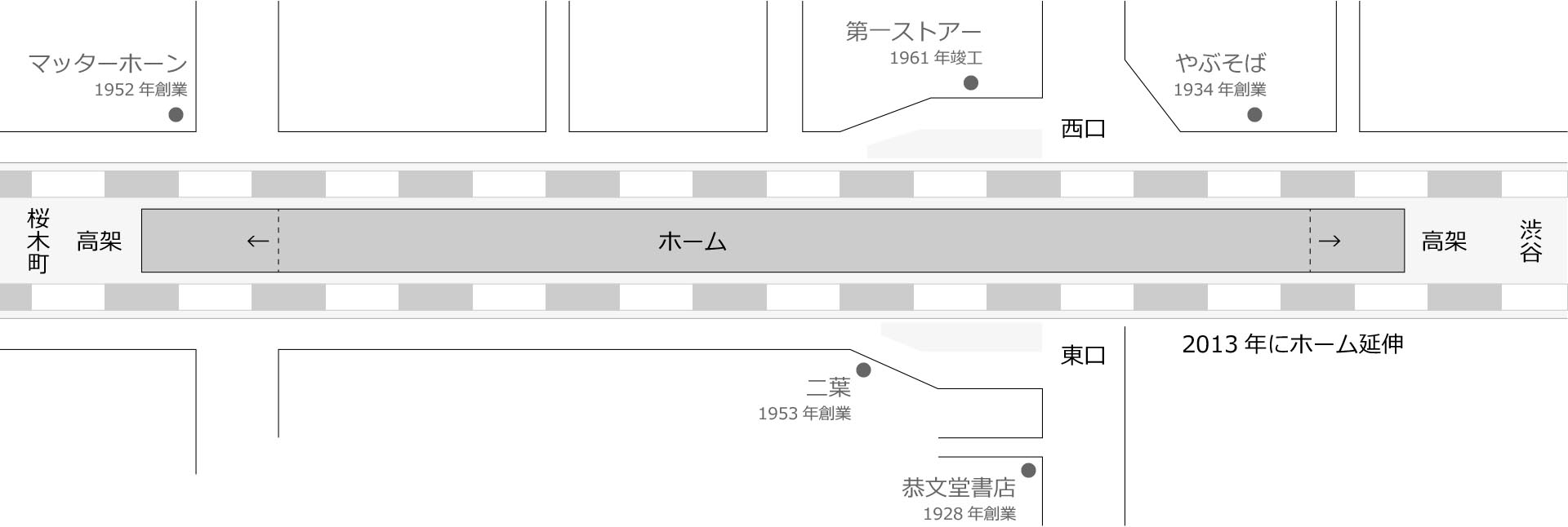「昭和25(1950)年頃には、改札位置はそのままで、出札口を横断道路の反対側の渋谷寄りに移した。」